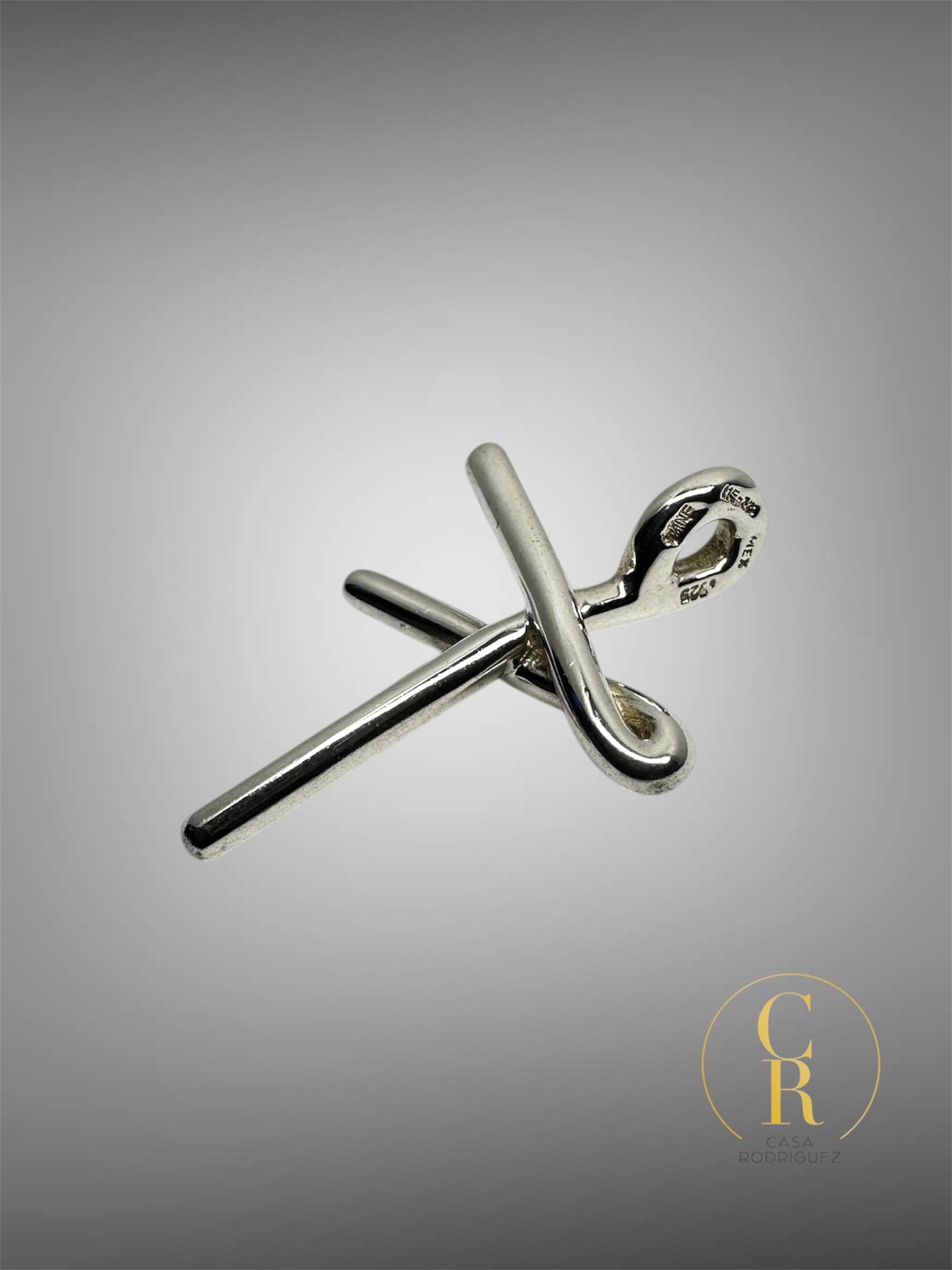 Fabricado en plata 925 de la mejor calidad, cuenta con un diseño de cruz de forma entrelazada, esta pieza es excelente para su uso diario, con un acabado pulido que la hace resaltar en todo momento, se encuentra en buenas condiciones y cuenta con los sellos de la marca.